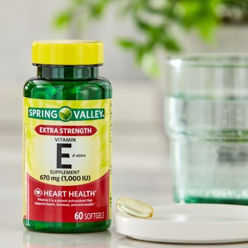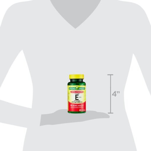 Nuestras cápsulas de vitamina D-alfa Extra Strength de Spring Valley son un suplemento formulado para apoyar la salud del corazón. La fórmula de fuerza extra proporciona 670 miligramos (1.000 UI) de vitamina E d-alfa por cápsula blanda. La vitamina E es un potente antioxidante que apoya la salud del corazón, el sistema inmunológico y la piel. La dosis recomendada para adultos es de una cápsula blanda al día, con un vaso lleno de agua, preferiblemente con una comida. Estas cápsulas blandas no contienen gluten, azúcar, lactosa, conservantes ni sabor artificial. Usted puede estar seguro de que Spring Valley Extra Strength Vitamina E D-Alpha Softgels se producen con estrictas directrices de calidad y están respaldados por nuestra garantía de calidad.
